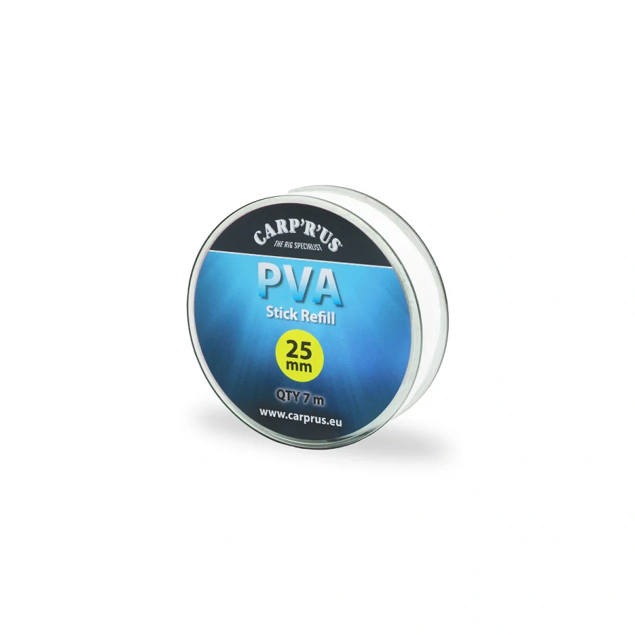 Carp´R´Us – PVA Stick Refill je nova řada precizně pletených náhradních PVA punčoch, které se samovolně nepářou a rychle rozpouštějí ve vodě, i v chladné díky kvalitním PVA vláknům. Rozpustnost se prodlužuje s poklesem teploty vody, například při 2 °C může trvat několik minut. Doba rozpadu se také prodlouží, pokud je PVA naplněna návnadami či doplňky s vysokým obsahem olejů. Ve velmi studené vodě doporučujeme plnit PVA těsně před použitím, aby se minimalizovala impregnace olejem. PVA Stick Refill je spolehlivá záloha pro PVA Stick System i jiné tunelové systémy o průměru 35 mm. Jemné pletení umožňuje použití širokého spektra návnad, včetně malých pelet, drceného boilies a jemných stick mixů. Obsahuje 20 m PVA punčochy o průměru 35 mm, kompatibilní s většinou tunelových systémů na trhu. Vlastnosti Precizně pletená PVA punčocha Dobrá rozpustnost i v chladné vodě Vhodná pro jemné návnady Kompatibilní s většinou tunelových systémů Technické parametry Průměr: Ø 35 mm Množství: 20 m