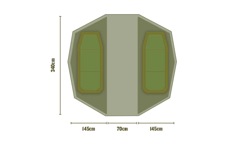 Dvojdílná odepínací ložnice pro Bivak Superdome Bivvy, která vytváří dvě plně oddělené místnosti uvnitř bivaku. Vlastnosti produktu zakrytá chodbička mezi jednotlivými kapslemi napříč bivakem přeměňují Superdome Bivvy na dvoustěnný přístřešek, což snižuje kondenzaci a více zadržuje teplo přišitá podlážka, přes kterou se nedostanou hlodavci a další nechtění hosté úložné vaky ve stěnách kapsle, které nabízí ještě více úložného prostoru prodyšné stěny z Polyesteru perfektně pasuje a není potřeba přidělávat kolíky Ložnice je dodávána s přenosnou taškou na zip. Technické parametry Materiál: 210D polyester Rozměry: 145 x 340 x 185 cm Hmotnost: 5,3 kg